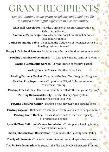 Fall Gala 2025 Honoree George Apap Learn more about the Honorees Pawling Community Foundation is turning generosity into impact... Gala Photos